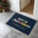 Farbenfroh, festlich, typografisch "Frohe Weihnachten" blau, Ferientürmatte. Passen Sie Ihre Unterschrift an.