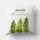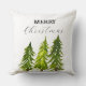 Christmas trees watercolor throw pillow. Merry Christmas, green, festive, vintage, retro pillow.