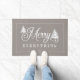 Merry Everything Grey Pine Trees Family Monogram Fußmatte