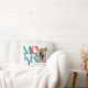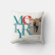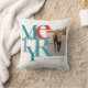 Diese 16" x 16" Weihnachtskissen verfügen über einen Platzhalter für Ihr Lieblings-Foto, Ihren Namen und Ihr Jahr. Die Buchstaben im Wort Merry sind groß und in verschiedenen Farbtönen aquamarin und rot auf einem Elfenbeinhintergrund.