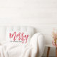 Dieses schlicht "Merry" Ferienkissendesign besticht durch ein rotes, gebürstetes Skriptdesign und einen modernen, speziell auf die Bedürfnisse der Gäste zugeschnittenen Text.
