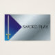 Blau und Silber Metallic Card und mittelalterliches Schwert mit blauem Gradienten Visitenkarte Vorlage. Königsschmuck und Goldschwert passen für einen König. Anpassbar, Schriftart, Hintergrundfarben und mehr online.