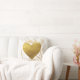 Dekoratives Kissen in einem Imitat goldfarbener metallischer Marmoruntergrund mit goldenem Folienherz in der Mitte. Design wird auf beiden Seiten des Kissens wiederholt.