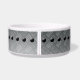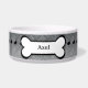 Niedliche Hundeschüssel mit Stahlblech-Design und Hundeknochen mit dem Namen Ihres Hundes im Knochen.