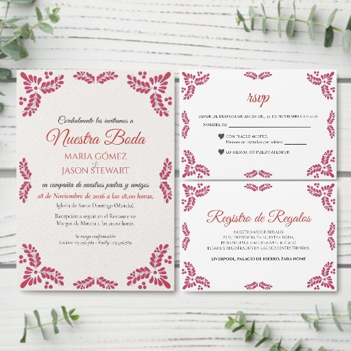 Mexican Talavera Red Floral Minimalist Wedding Begleitkarte
