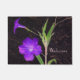 Das drastische Bild auf dieser Fußmatte ist eine ursprüngliche Fotografie der mexikanischen Petunien. Die Pflanzen wachsen in den Gruppen hoch. Die Blumen bekannt für ihre schönen Schatten von Lila. Die Blüte wächst auf den dünnen Stämmen, die vom langen, schmalen Grün-Blätter herauskommen. Der dunkle Hintergrund löste die Farben aus. Es gibt Textlesung "Willkommen". Dieses ist Set, damit Sie personifizieren oder löschen, wenn Sie wünschen.