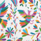 Farbenfroher mexikanischer traditioneller Textilstil. Zusammensetzung mit Vögeln, Blume, Zweigen und Tieren