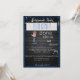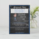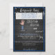 Mic Drop Retirement Party Einladung. Abendessen, Getränke, Hotel, uAwg. Hintergrund aus schwarzem Holz Blau-Weiß-Schriftart.