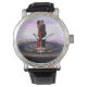 Uhr, Vintage Männeruhr mit schwarzem Lederarmband