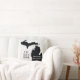 Schwarze Grafik von Michigan auf rustikal weiß gekalktem Holzhintergrund mit rotem Herz und GPS Koordinaten. Alle Text- und GPS-Koordinaten können geändert und das Herz an einen anderen Ort in Michigan verschoben werden.