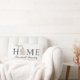 Stilvolles Begrüßungskissen mit "Zuhause"-Text mit Michigan-Staat-Karte und individuellem Text, der mit Ihrem Familiennamen und der Stadt, dem Staat, in dem Sie leben, personalisiert werden kann. Der Marker für die Herzstadt kann über Customized an den entsprechenden Ort verschoben werden. Horizontale Streifen ziehen die Rückseite an. Weich schwarz / onyx, beige und weiß.