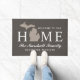 Das stilvolle Doormat "Welcome to our Zuhause" zeichnet sich durch ein typografisches Design mit Staat der Michigan-Karte aus. Personalisieren Sie die Monografie Ihres Familiennamen und den Namen Ihrer Stadt. Umfasst eine Hintergrundebene mit rustikaler Textur. Neutrale Farben sind dunkeltaupe grau, warm grau und weiß.