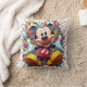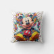 Ein lebendiges und spielerisches Throw-Kissen-Design mit Mickey-Maus in einer farbenfrohen Farbexplosion. Der ikonische Disneycharakter ist umgeben von einer chaotischen und dynamischen Zusammensetzung von Sprüngen, die ein Gefühl von Freude und Spannung schaffen.