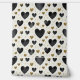 This elegant seamless pattern features a playful arrangement of hand-painted watercolor hearts in deep charcoal and black. Interspersed throughout are shimmering gold glitter accents, including smaller hearts and abstract geometric confetti. The textured off-white background gives the design a premium, fabric-like feel, making it an ideal choice for sophisticated nursery walls, chic bedroom accents, or creative DIY projects.