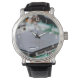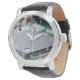 Uhr, Vintage Männeruhr mit schwarzem Lederarmband