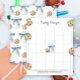 Ein kleiner Keks ist unterwegs! Party mit Duschkabine. Aquarellkekse mit Schokolade und Flaschenmilch mit blauem Bogen.