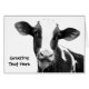 Ein Plakatartbild eines jungen Rind- Molkereikalbs. Schwarzweiss--, fleckige gemusterte Babykuh mit hellen Augen und flockige Bärte.