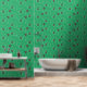 Milchkühe und Milchkühe auf ruhigem, grünem Hintergrund Die Mauer für Kinderzimmer ist rustikal