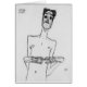 "Mime van Osen mit sehr dünnen Fingerspitzen" Schwarzes Kreide zeichnend von einem sehr dünnen Mama, das sich mit langen Strichen, Knochenschultern und gegenübergestellten Fingerspitzen rechts lehnt. Gezeichnet vom österreichischen Maler Egon Schiele (1890-1918), aus seiner Mime van Osen Serie, 1910.