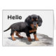 Jeder Anlass-Karte mit Miniatur-Dackel-Welpe. Text kann für persönliche Nachrichten angepasst werden. Sie suchen nach einer Produktkoordination.