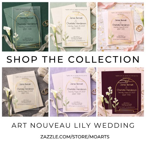 Minimal Art Nouveau Gold Arch Lily Rust Wedding Einladung