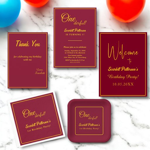 Elegant Chic Burgundy And Gold Birthday CollectionDesignt von Mohamed Sherif