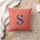Minimaler dunkler Orange mit großer blauer Monogra Kissen