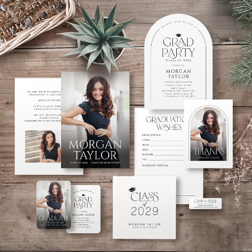 Minimalistische elegante Serif und gerahmtes Foto, mehr Details auf der Rückseite, einfach und raffiniert, Custom es mit Ihren eigenen Fotos und Grade Party Informationen.
