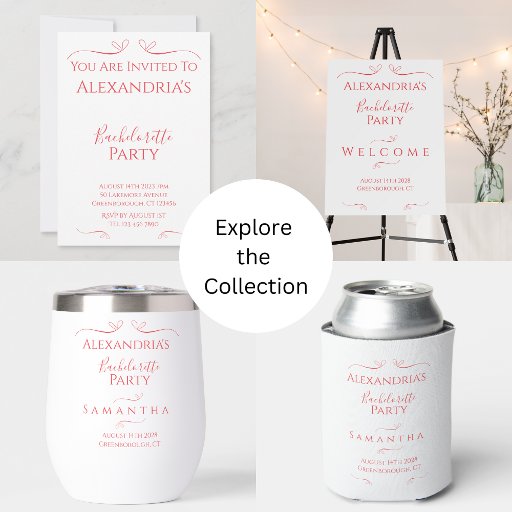 Dies ist ein minimales und modernes Junggeselinnen-Abschied-Design. Es ist in trendigem Rot / Rosa mit stylischer Typografie / Text. Es hat, "Alexandrias Junggeselinnen-Abschied", in stilvoller Typografie. Der Text ist von stilistischen, wirbeligen Herzen gerahmt. Dieses elegante und moderne Design ist perfekt für Ihre Junggeselinnen-Abschied-Feier. Geben Sie zum Personalisieren einfach den Namen der Braut in das Textfeld ein. Hier können Sie auch die Erholung des Textes ändern, wenn Sie gewollt werden. Um die Farbe oder den Schriftart zu ändern, Karo aus dem Entwurfsbearbeitungsprogramm. Wenn Sie Hilfe bei der Personalisierung oder für ein benutzerdefiniertes Design benötigen, kontaktieren Sie mich per zazzle Chat oder E-Mail: ursuladawnmoon@gmail.com