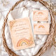 A warm and modern boho baby shower design featuring a soft neutral rainbow in earthy terracotta, sage, peach, and sand tones. Delicate dried florals and subtle textured details create an organic, minimalist look that feels both cozy and refined. Perfect for celebrating a mama-to-be who loves natural palettes, modern bohemian styling, and timeless simplicity.