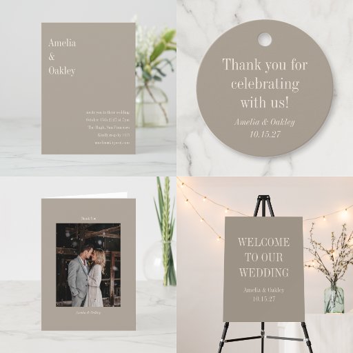 weddingeditable text templateminimalistclassicelegantunique typographytrendy modern aestheticsimplenames bride groom coupletaupe brown