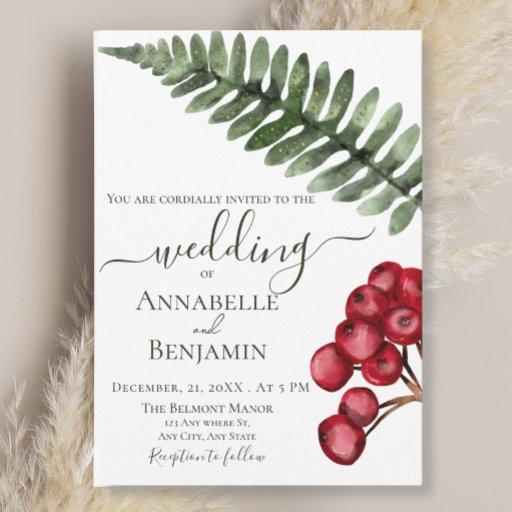 modernblumenreichwinterhochzeitminimalgrüne blättergrün und weißrote beerenweihnachtsfeierelegantgrün