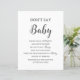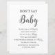 Fügen Sie Ihrer Babydusche eine Touch moderner Einfachheit mit diesem Don't Say Baby Spielschild hinzu. Dieses preisgünstige Papierblatt wurde mit einer sauberen schwarz-weißen ästhetischen und eleganten Typografie entworfen und eignet sich perfekt für neutrale oder minimalistische Babyduschen. Zeigen Sie es in der Nähe Ihres Eintrags oder Spieltisches, um die Gäste durch die lustige Herausforderung zu führen: Sagen Sie nicht "Baby" oder verlieren Sie Ihre Kleidung! Ideal für geschlechtsneutrale Duschen, budgetbewusste Gastgeber oder Party-Planer in letzter Minute. Dieses bedruckbare Baby Duschgame-Schild ist sowohl stilvoll als auch funktionell - ohne Aufregung, nur Spaß. Entdecken Sie mehr lustige Babydusche-Spiele und Aktivitäten im Angebot! c) Somerset Fine Paperie