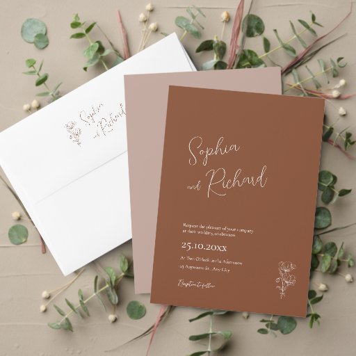 Minimalistisch Terracotta Boho Botanicals Hochzeit Einladung