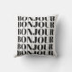 Stilvolles Kissen mit französischem Ausdruck Bonjour in moderner Schwarz-Weiß-Typografie.