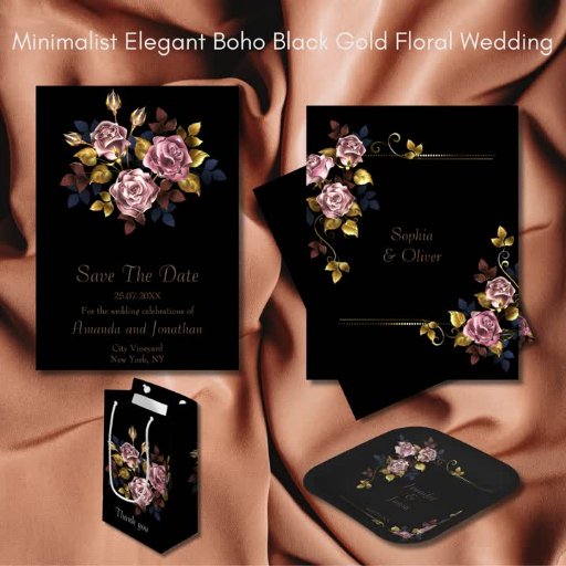 Minimalist Elegant Boho Black Gold Floral WeddingDesignt von Reviva Sisters