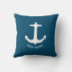 Dieses personalisierte, ozeanblaue Kissen zeichnet sich durch ein minimalistisches nautisches Design mit einem weißen Anker und einem Namen darunter aus. Sie können die Farben ändern, indem Sie auf Personalisieren -> Weitere Einstellungen vornehmen (vergessen Sie nicht die Rückseite!!).