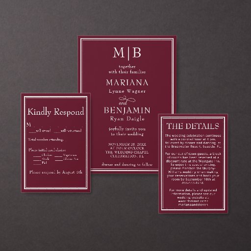 Burgundy Modern Border Minimalist WeddingDesignt von Denise Witmer