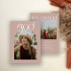 ein modernes minimalistisches Design mit einem kalligraphischen Schriftzeichen in Gold und einem vergoldeten gerahmten Foto an der Vorderseite der Karte, ein zweites Foto mit personalisierten Informationen auf der Rückseite.