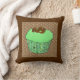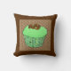 Kuchen mit grünem Pfefferminz-Zuckerguss, mit Schokoladenwürfeln überzogen, in einem dekorativen, grünen Fraktal-Kuchenwickler, auf einem braunen und beigen wirbelnden gemusterten Kopfkissen