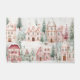 Eine minzige und rosa Aquarell Winterszene mit gemütlichen Zuhause, Weihnachtsbäumen und Schnee!