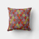 Dieses Kissen hat ein Art Deko Design von Tulpen aus Pentagons und Trapezfilmen in Orange, Rot, lila, Gold und Grün.