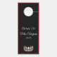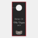 Dieser Türhänger ist zweiseitig und mit einer silbernen Krone ganz unten gekrönt. Obere Kanten, umgeben von einem roten Rand mit Beispieltext "Zuhause von Miss Virginia 2018". Vorder- und Rückseite sind rot und schwarz. Passen Sie dieses Objekt Ihren Wünschen an, mit welcher Farbe oder Phrase Sie möchten, oder kaufen Sie es wie geplant.
