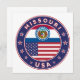 Abzeichen von Missouri mit Fahne von Missouri und Fahne von US-Farben, gerundete Form. Emblem von Missouri. Siegel von Missouri. USA Staaten Collection