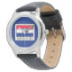 Uhr, Vintage Männeruhr mit schwarzem Lederarmband
