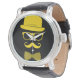 Uhr, Vintage Männeruhr mit schwarzem Lederarmband