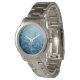 Eine hübsche und elegante Armbanduhr mit einer ätherisch blauen Blumenzene.