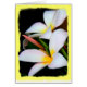 Mit Blumen, Plumeria-Blüte auf Schwarzem mit gelber Grenze