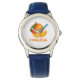 Kinderuhr aus Edelstahl mit blauem Lederarmband