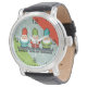 Uhr, Vintage Männeruhr mit schwarzem Lederarmband